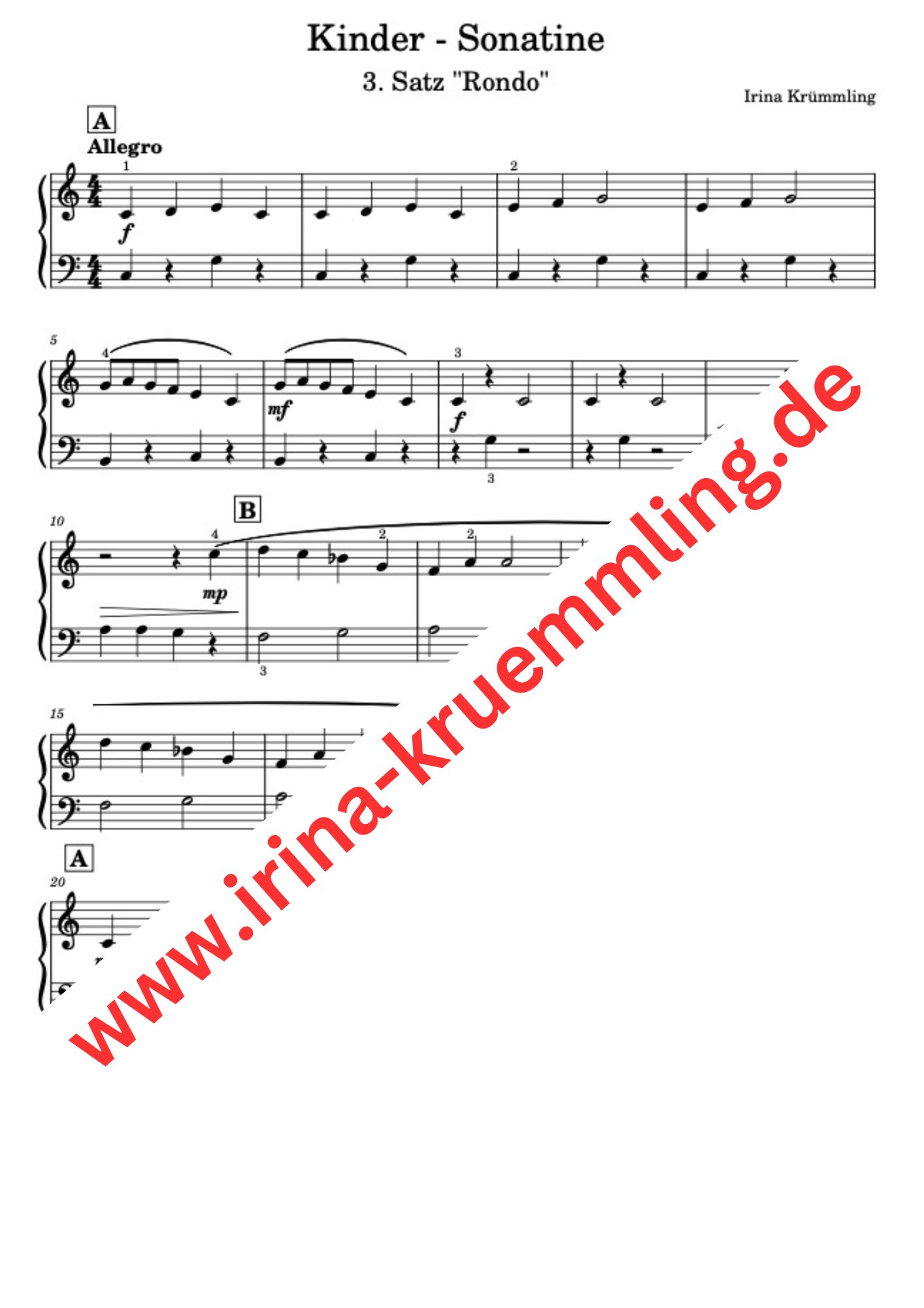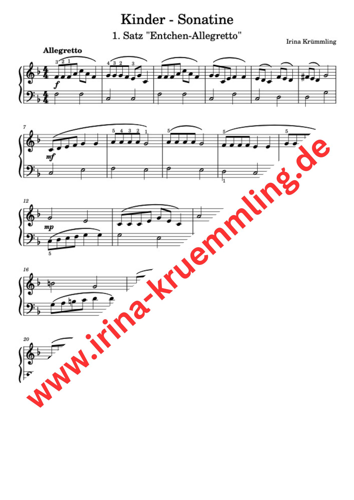 Die Kinder-Sonatine für Klavieranfänger wurde durch deutsche Kinderlieder inspiriert. „Fünf kleine Entlein“, „Alle meine Entchen“, „Kommt ein Vogel geflogen“, „Wenn ich ein Vöglein wär‘“, „Bruder Jacob“, „Dornröschen war ein schönes Kind“, „Hopp, Hopp, Hopp, Pferdchen lauf Galopp“ - alle diese Volkslieder kommen in dem Zyklus vor und steigern durch ihre Bekanntheit die Freude am Musizieren.